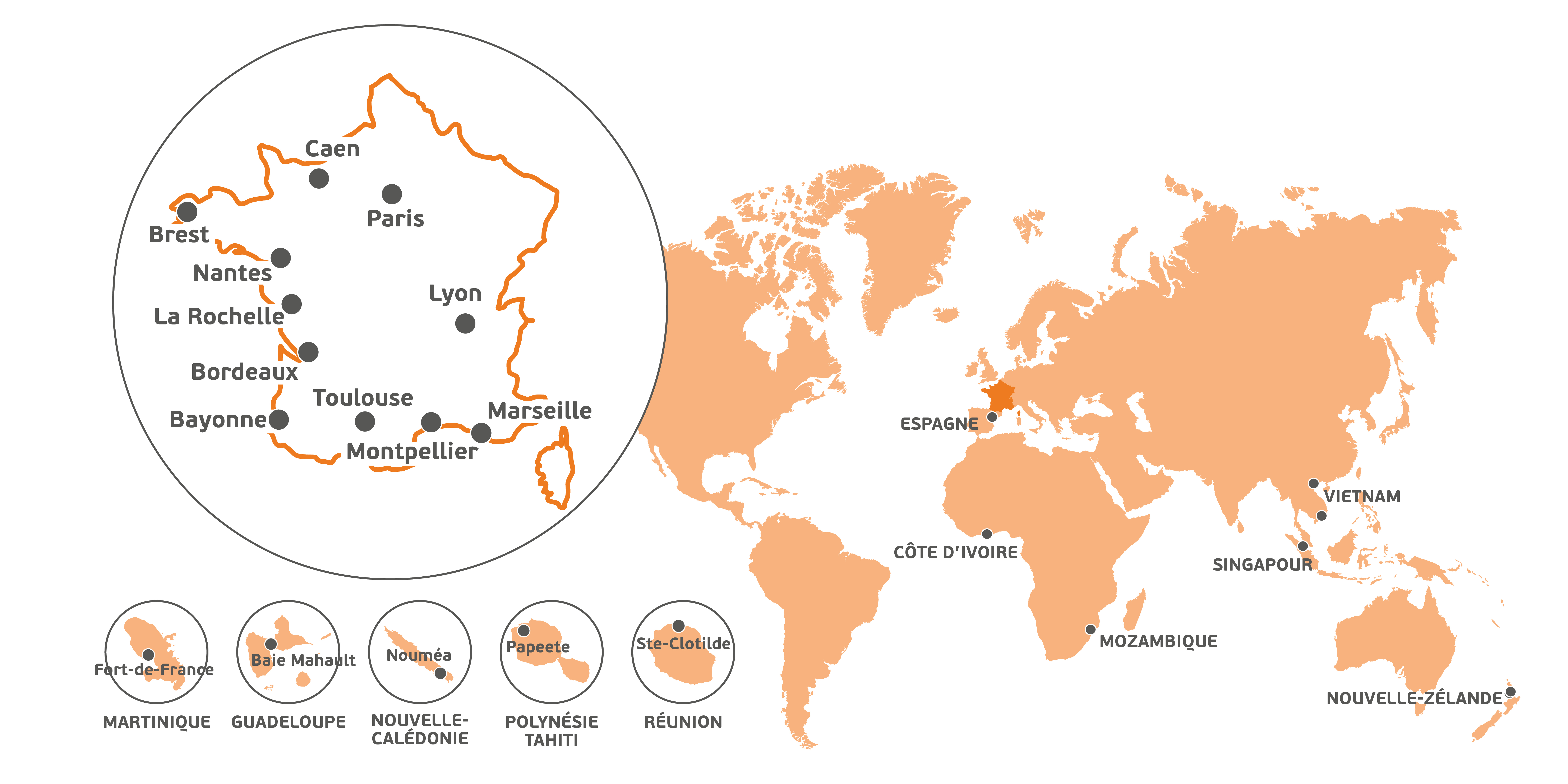 Présentes depuis près de 30 ans à l'international, nos équipes sont intervenues sur plus de 120 projets répartis aux quatre coins du globe, avec une volonté forte d'être à l'écoute de nos clients, de travailler en co-construction et d'apporter une expertise globale en adéquation avec les intérêts du projet.